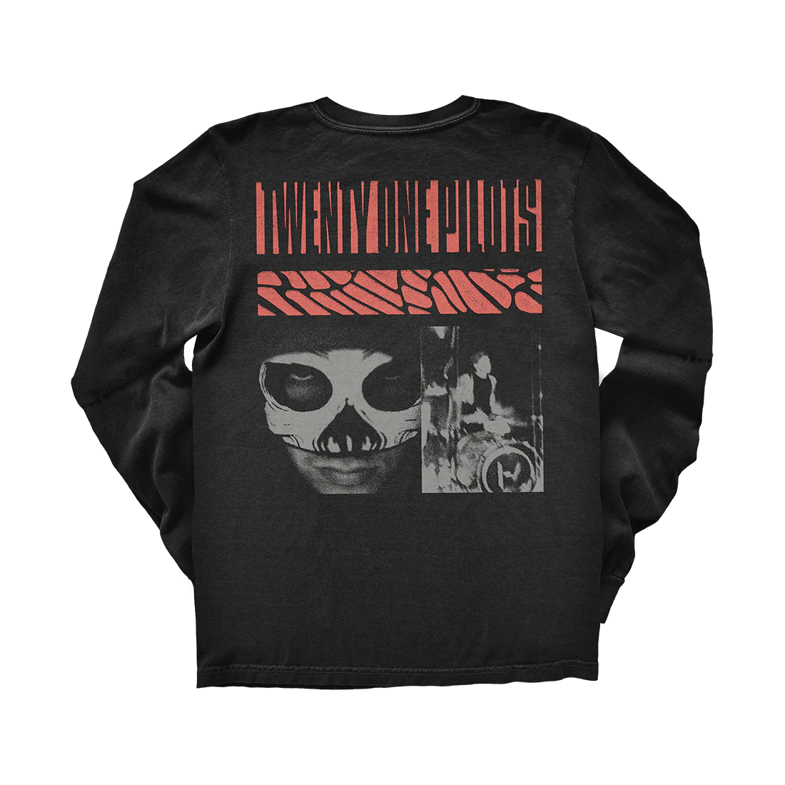 THE TWENTY ONE PILOTS ‘BLURRYFACE ANNIVERSARY LONGSLEEVE’ FEATURES A PRINT ON THE FRONT AND BACK OF A UNISEX HEAVYWEIGHT, RELAXED FIT BLACK LONGSLEEVE. 100% RING SPUN COTTON.