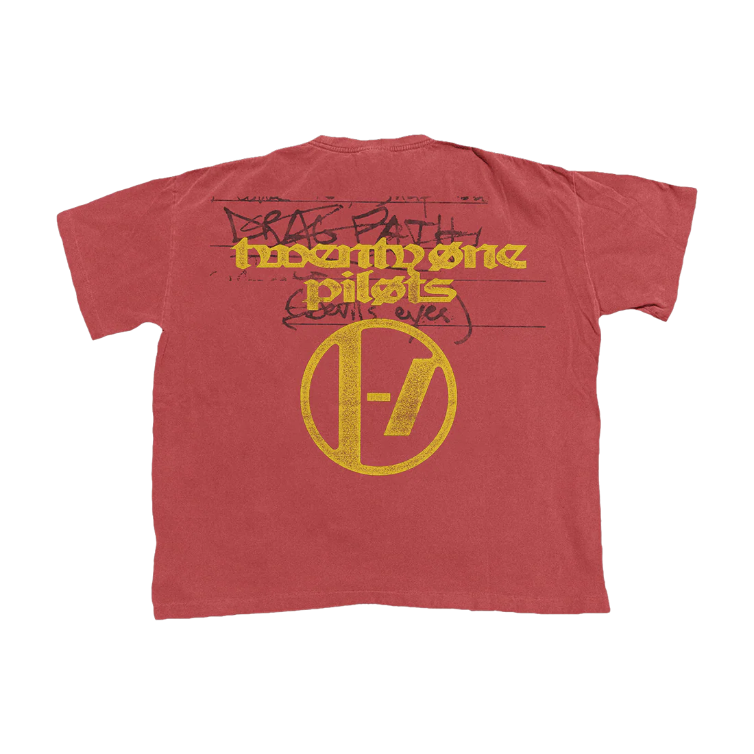 The Twenty One Pilots ‘Breach Crimson T-Shirt’ features Breach imagery on the front and back. 100% ring spun cotton crimson unisex t-shirt.