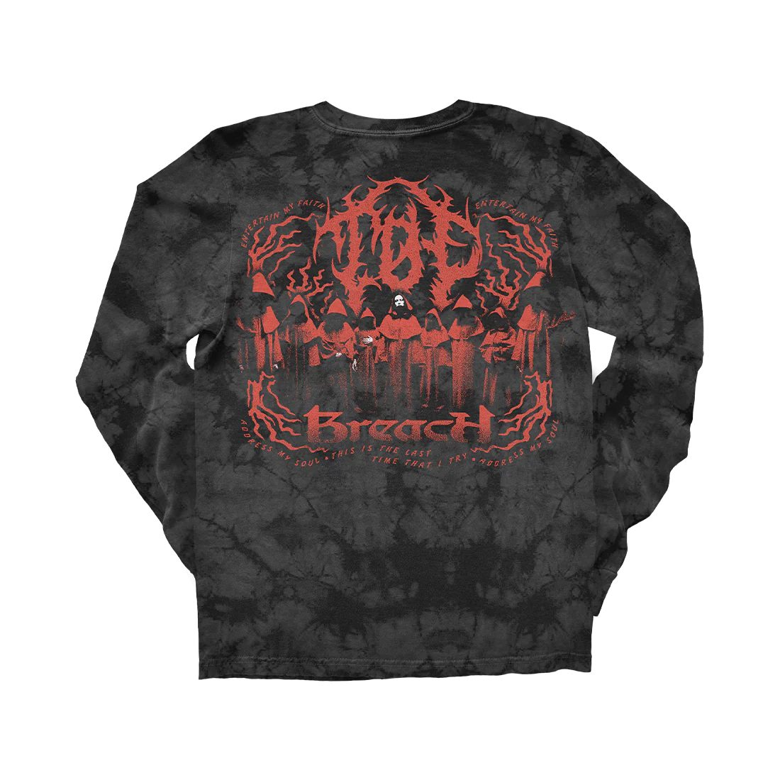 The Twenty One Pilots ‘Breach Long Sleeve’ features Breach imagery on the front, back and logo down the sleeve. 100% ring spun cotton black tie dye long sleeve t-shirt.